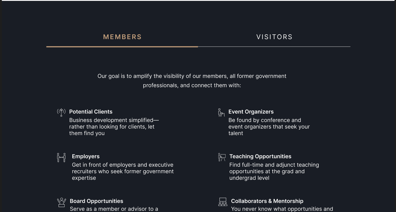 The resulting site seamlessly blends classic aesthetics with modern functionality, offering members a distinguished online space to connect, collaborate, and expand their professional networks in a refined digital environment.