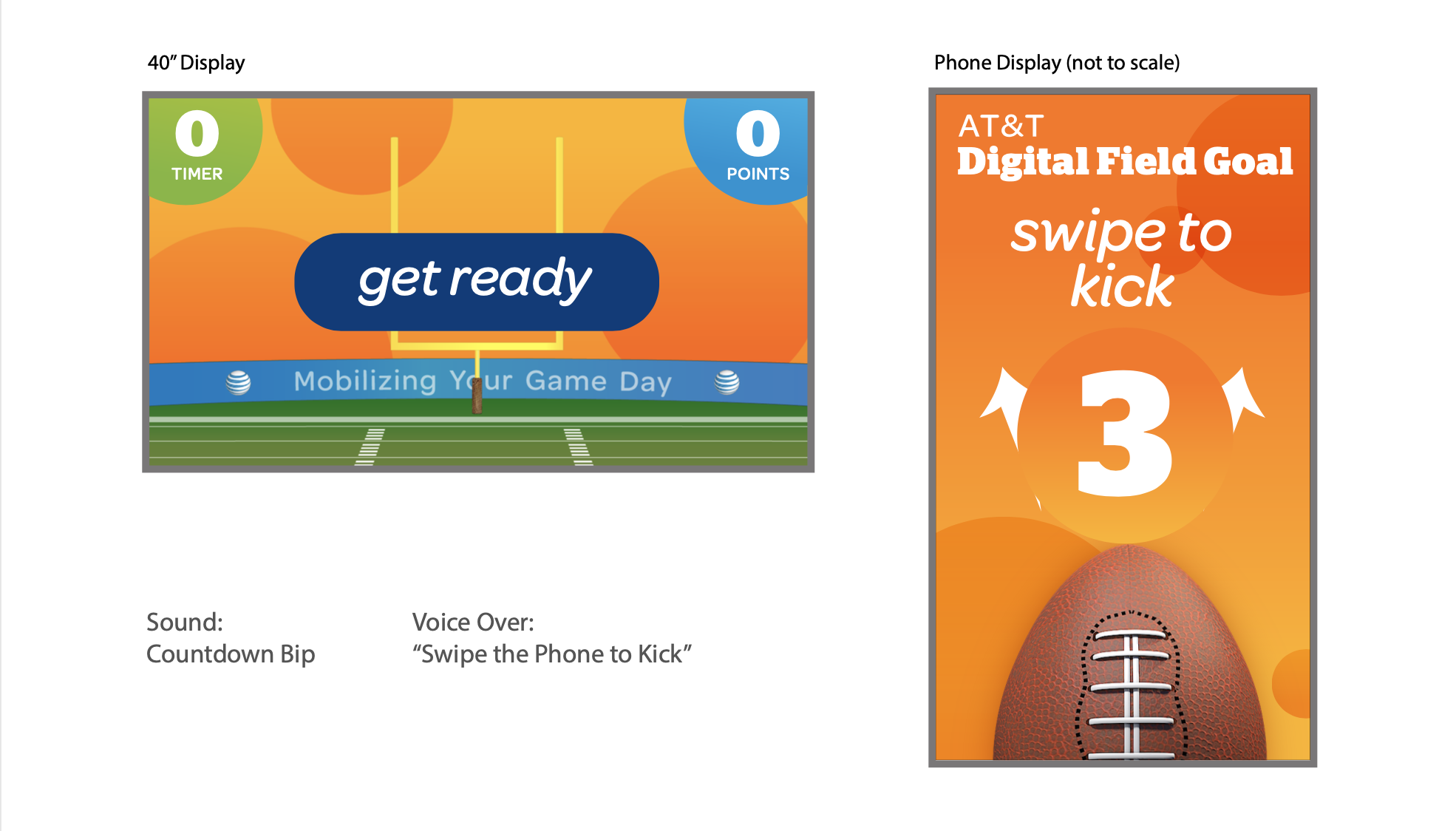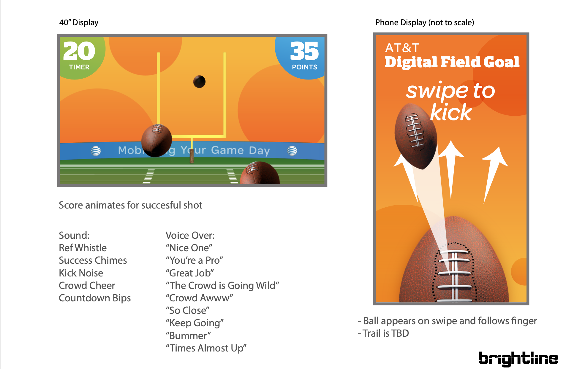 Designed an interactive Half Time game sponsored by AT&T where users could use their phones to 'kick' field goals. This task involved developing a clear concept for the game, ensuring it aligned with the halftime theme and was easily understandable for users.